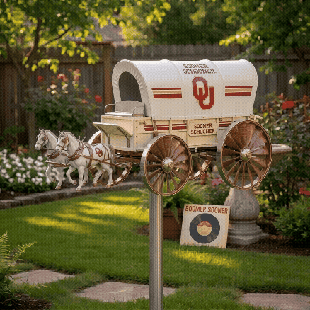 🐎✨ This is more than just a yard decoration — it’s a story in motion. Inspired by one of the most iconic symbols of the University of Oklahoma, the Sooner Schooner, this wind spinner blends history, school spirit, and dynamic design into one striking piece. What was once a static display is now brought to life, turning your yard into a statement of pride, passion, and belonging for every fan and alum.
